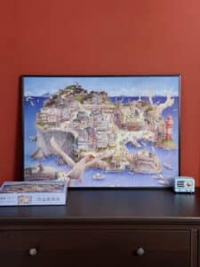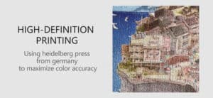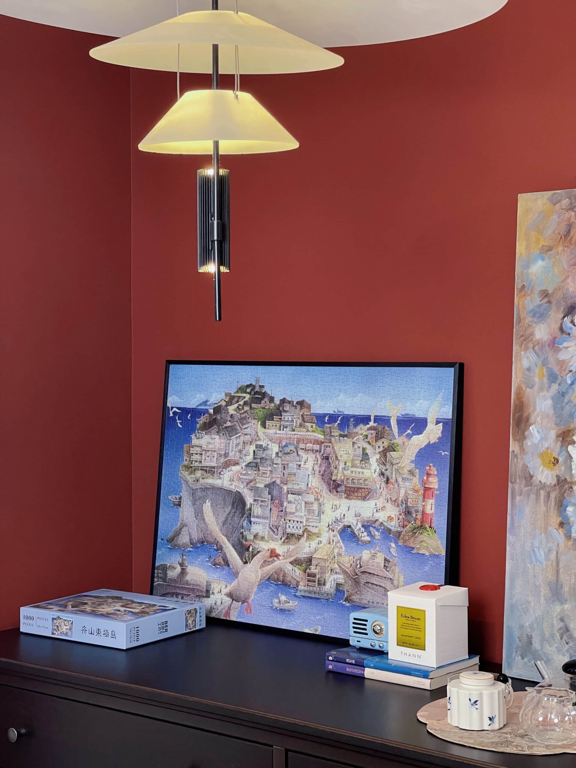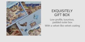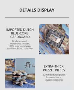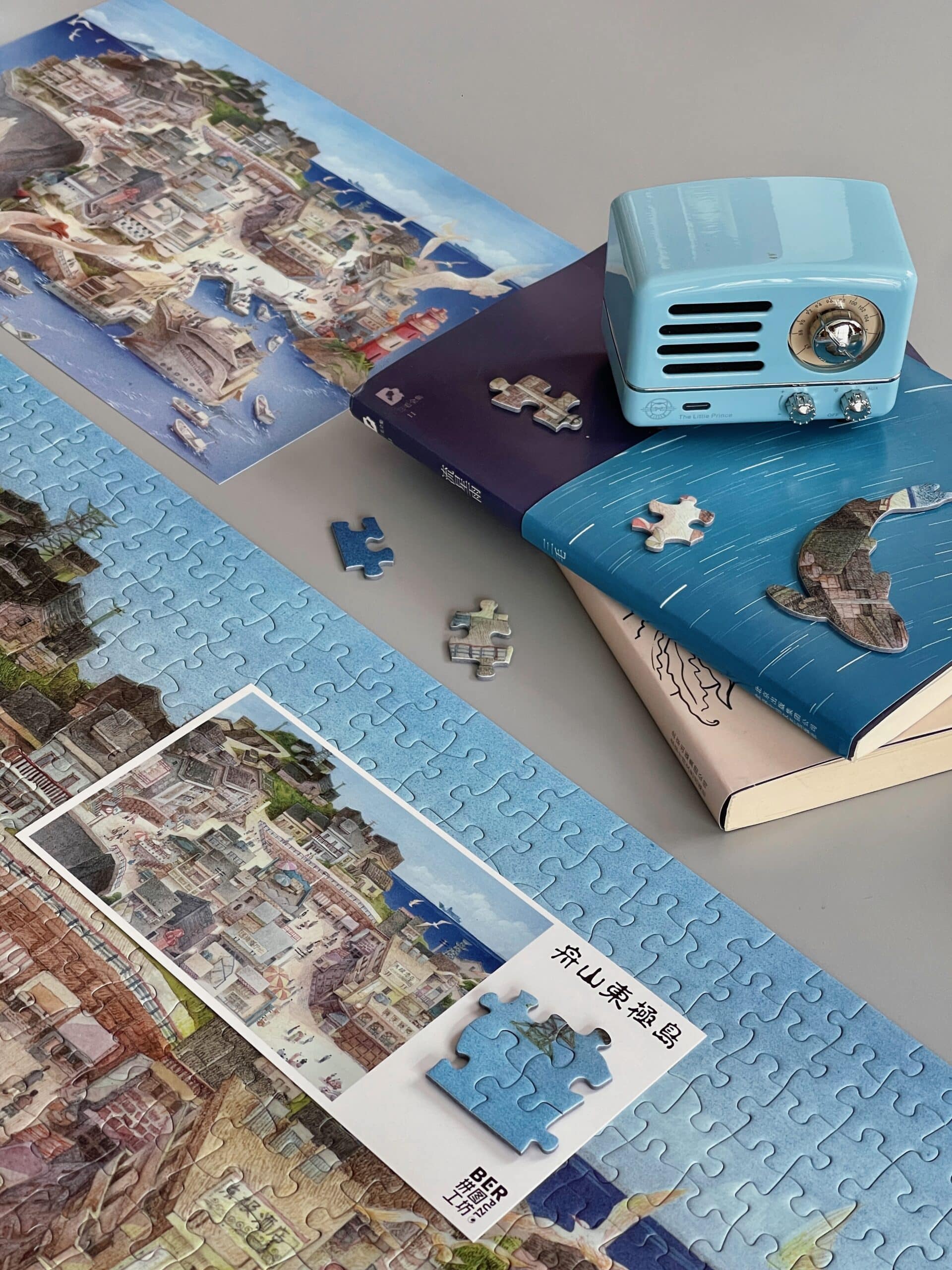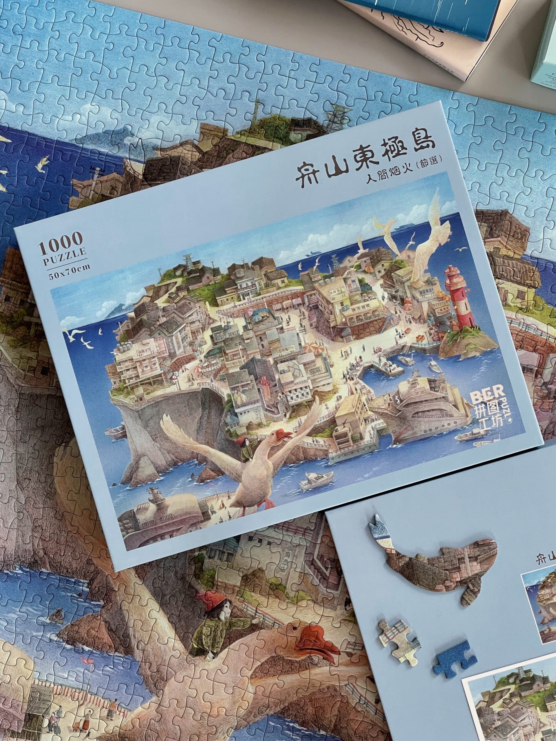 The Zhoushan Dongji Island 1000-piece art puzzle presents a hand-drawn panorama of this picturesque island town, where clusters of traditional island buildings rise gracefully along the shoreline. Rich in detail and atmosphere, the illustration captures the quiet beauty and charm of life by the sea. Crafted with premium blue card and a smooth matte touch finish, the puzzle offers both an immersive cultural journey and a deeply satisfying assembling experience.