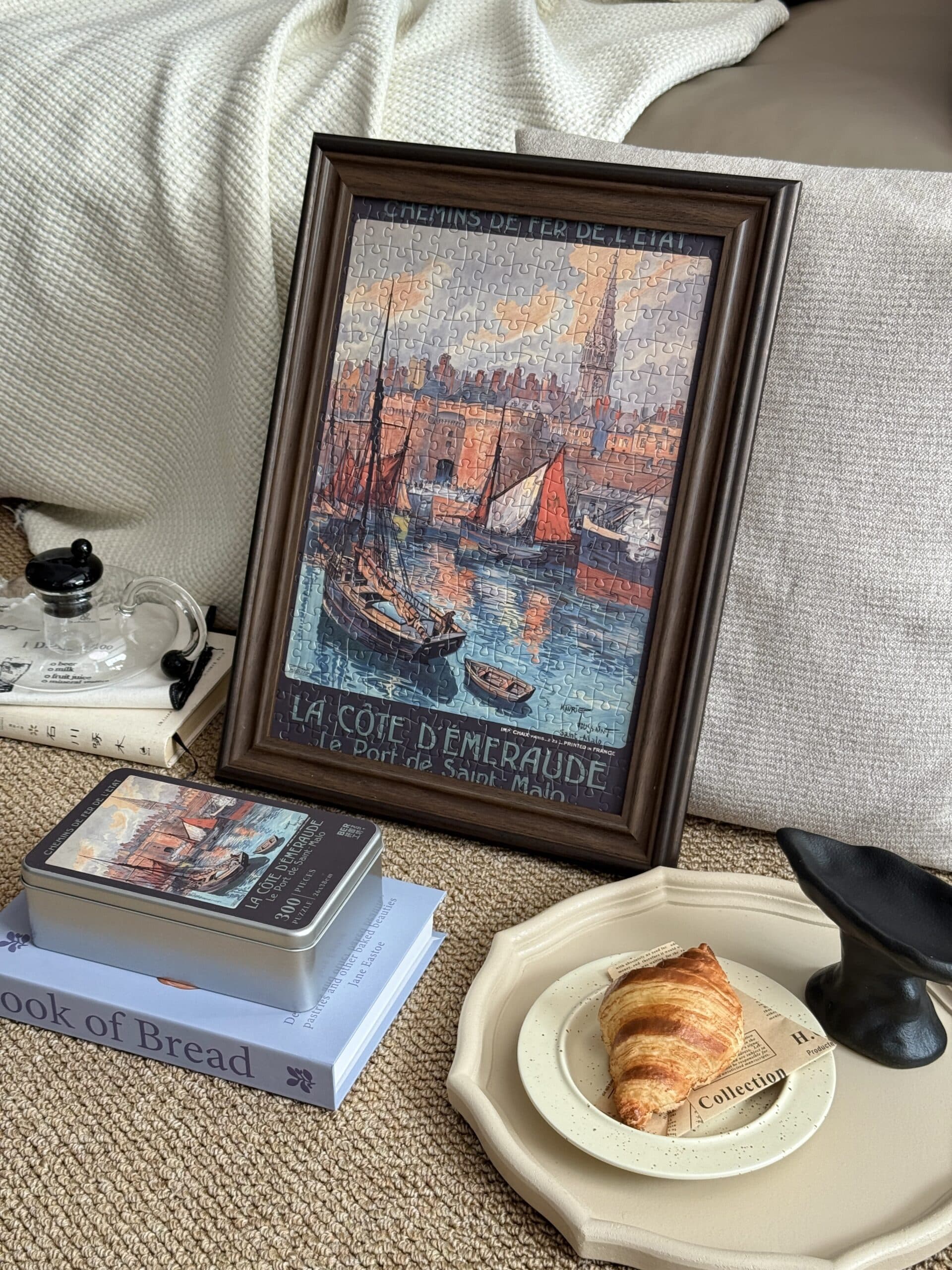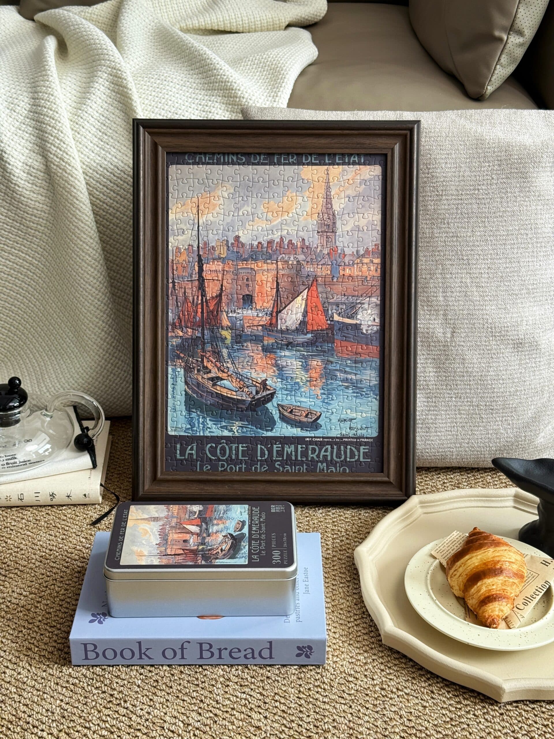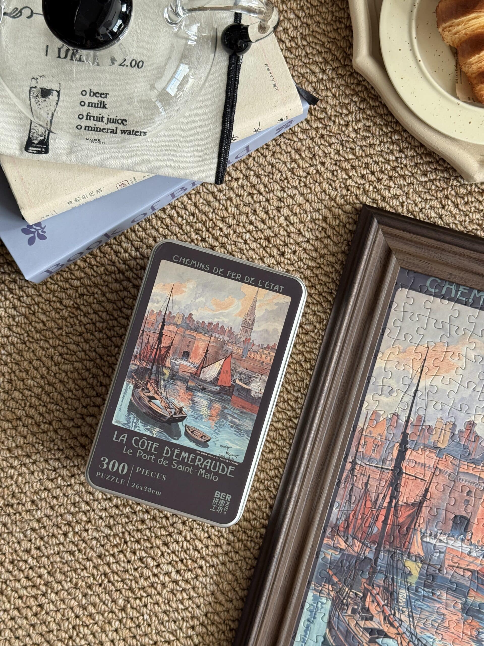 The Emerald Coast 300-piece velvet art puzzle captures the serene beauty of a European coastline at sunset, bringing a sense of calm and relaxation. Made from premium imported blue card stock with a matte velvet-touch finish, it provides a smooth, luxurious feel.Packaged in a compact and elegant tin, it offers a relaxing and visually rewarding puzzle experience.