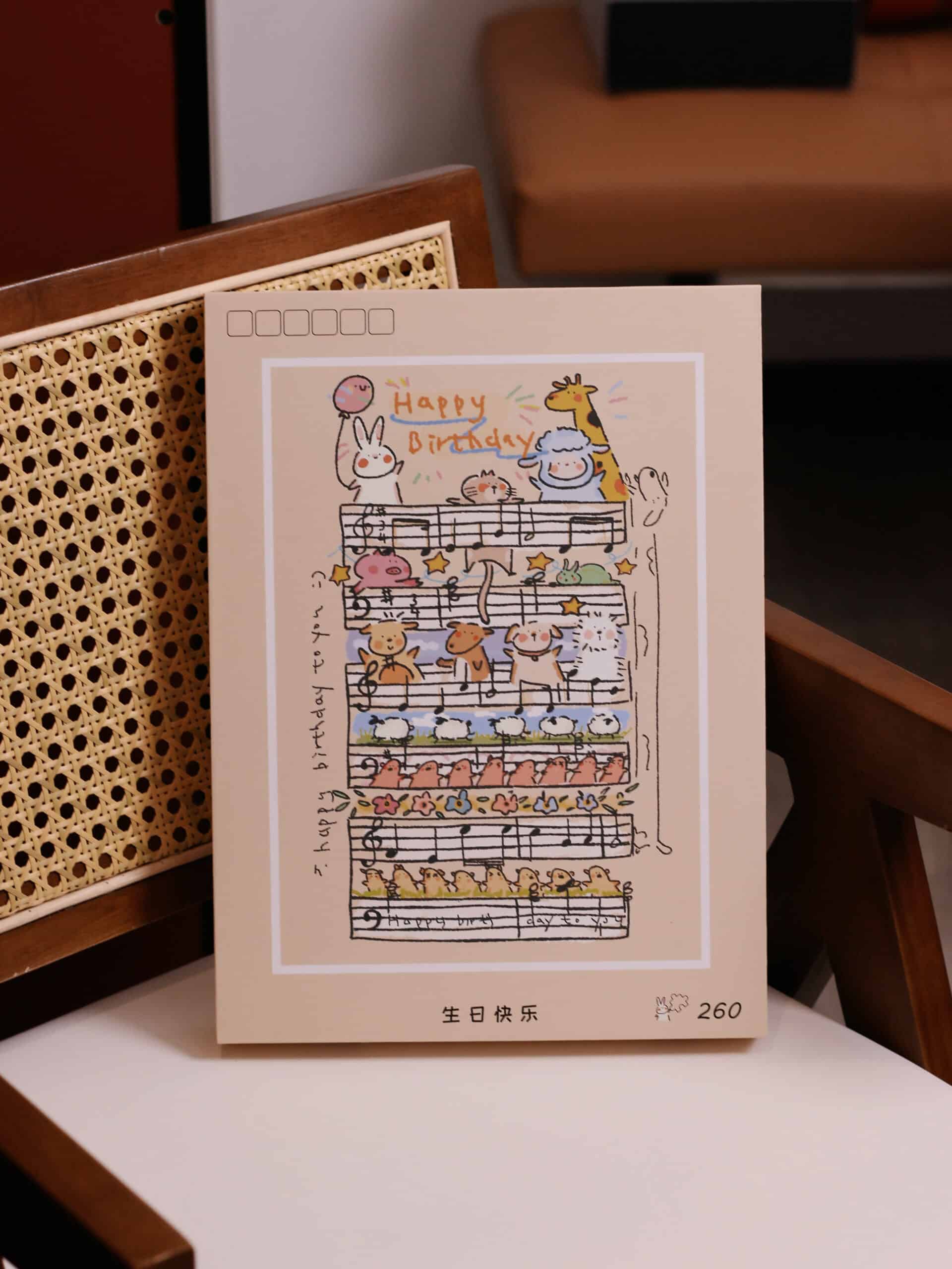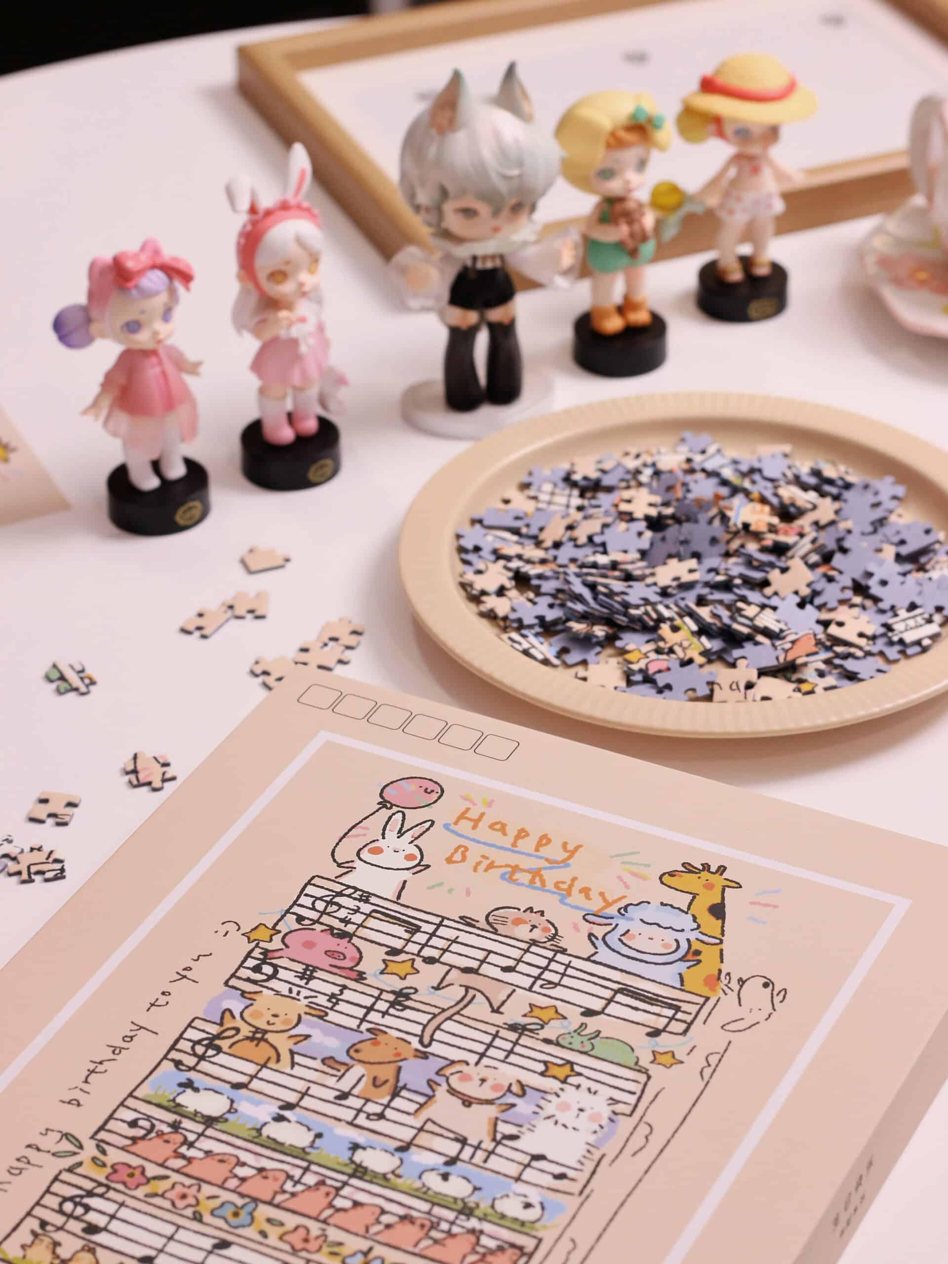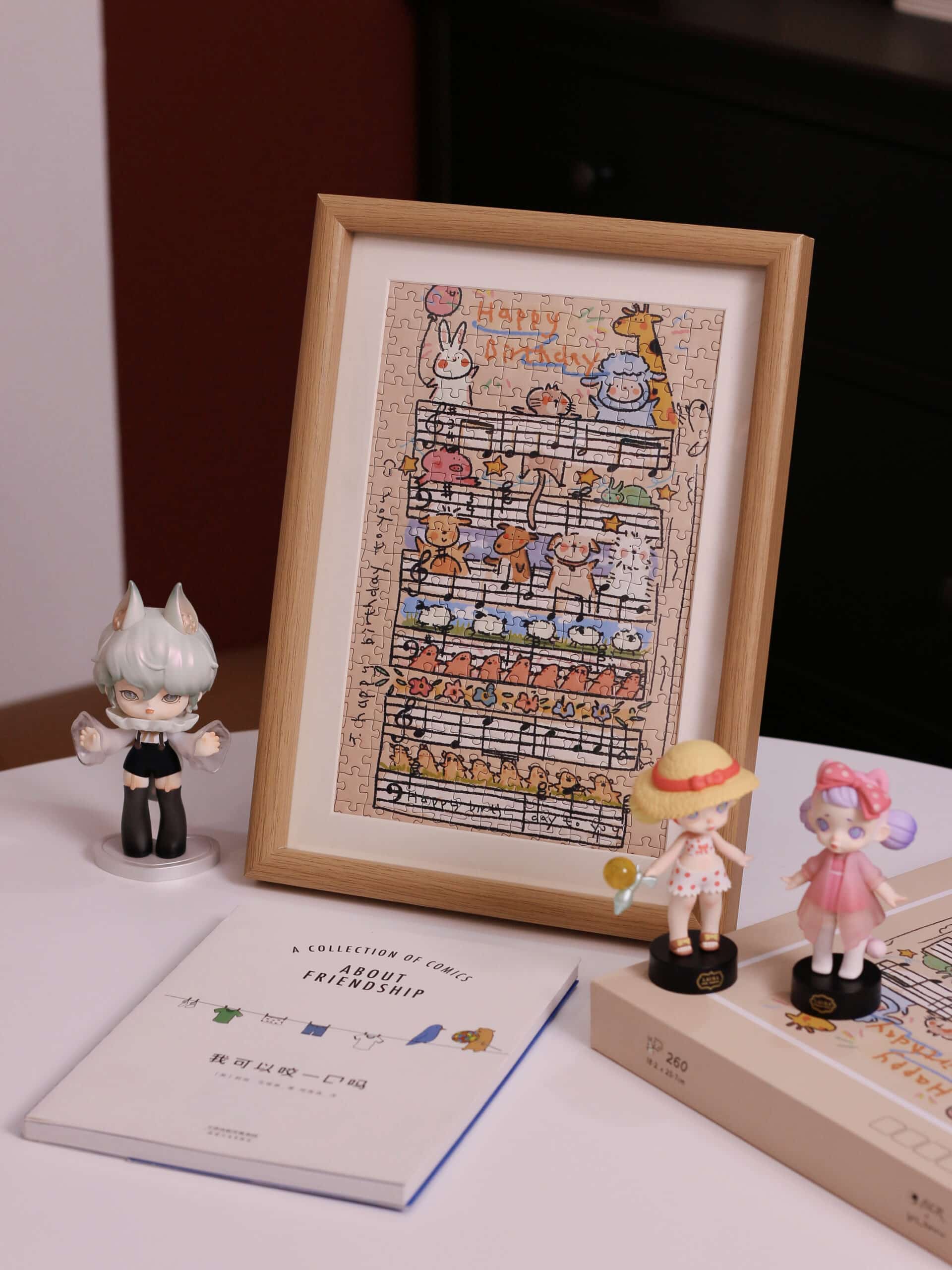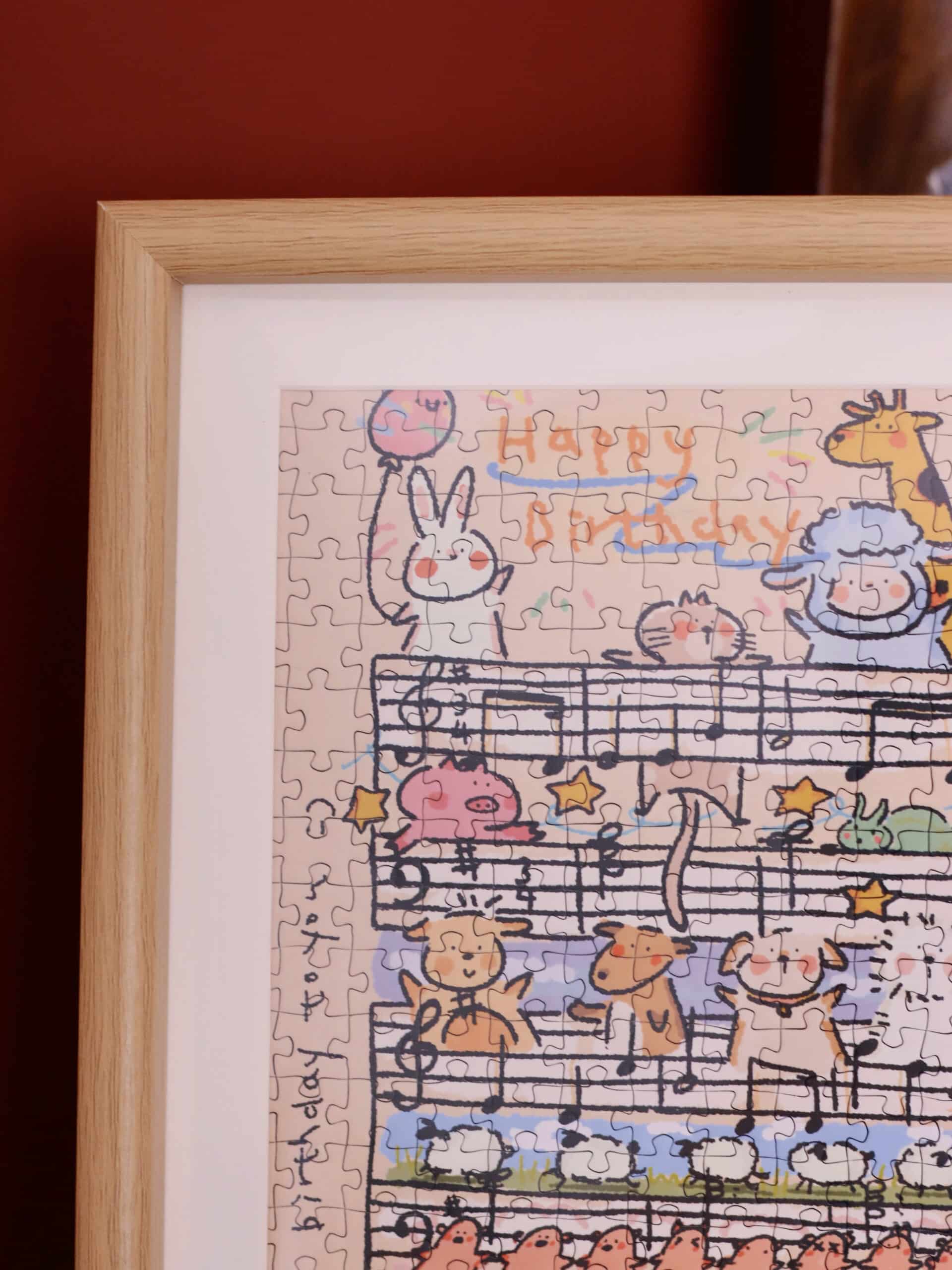 The Happy Birthday 260-piece velvet art puzzle presents a charming scene of Baudelaire the little lamb and his adorable animal friends singing a cheerful birthday song just for you. Crafted from high-quality blue card with a smooth touch finish, it includes a reference image and a solid wood frame, serving both as a cherished keepsake and a charming tabletop decoration while offering a delightful puzzling experience.