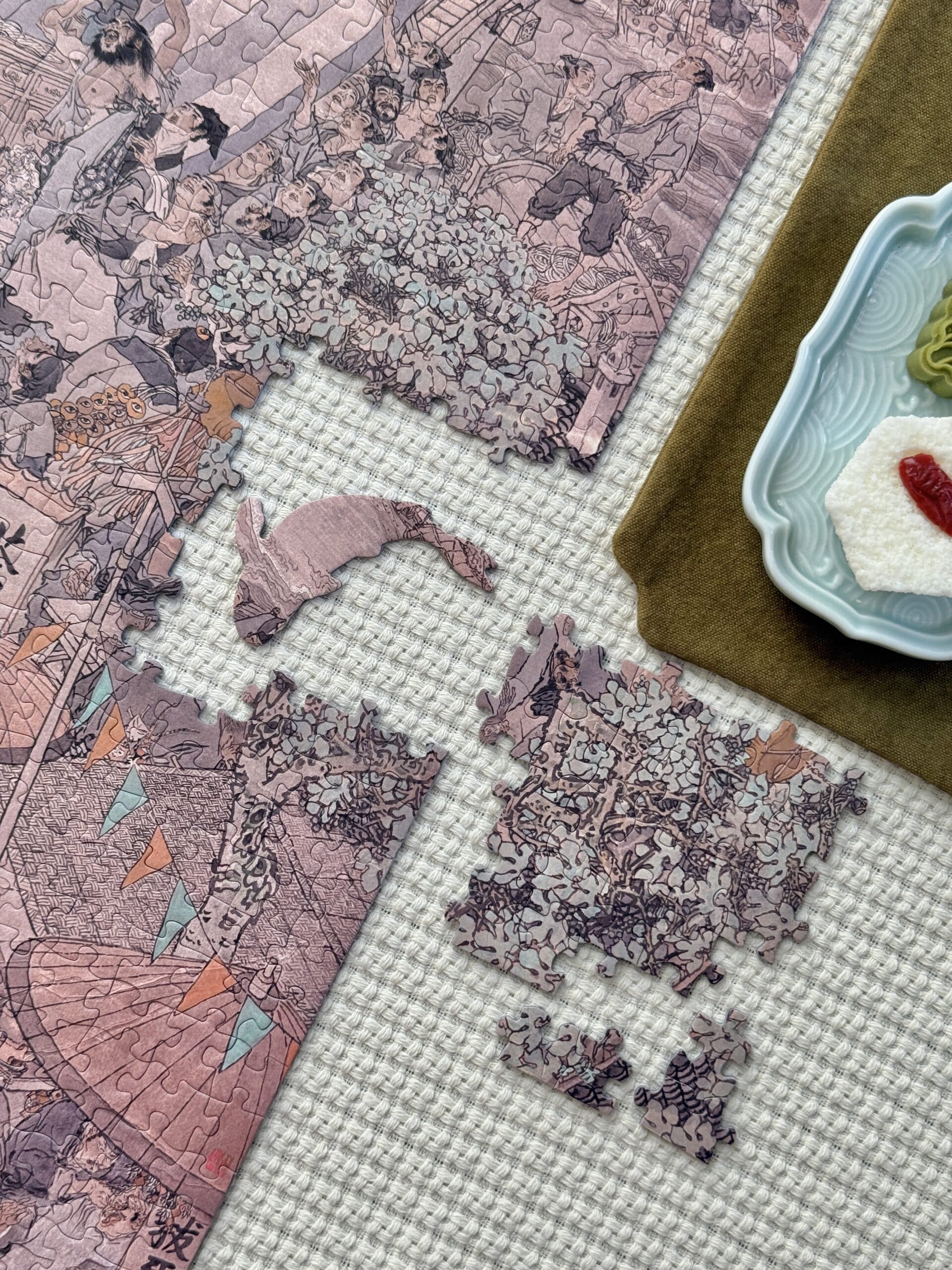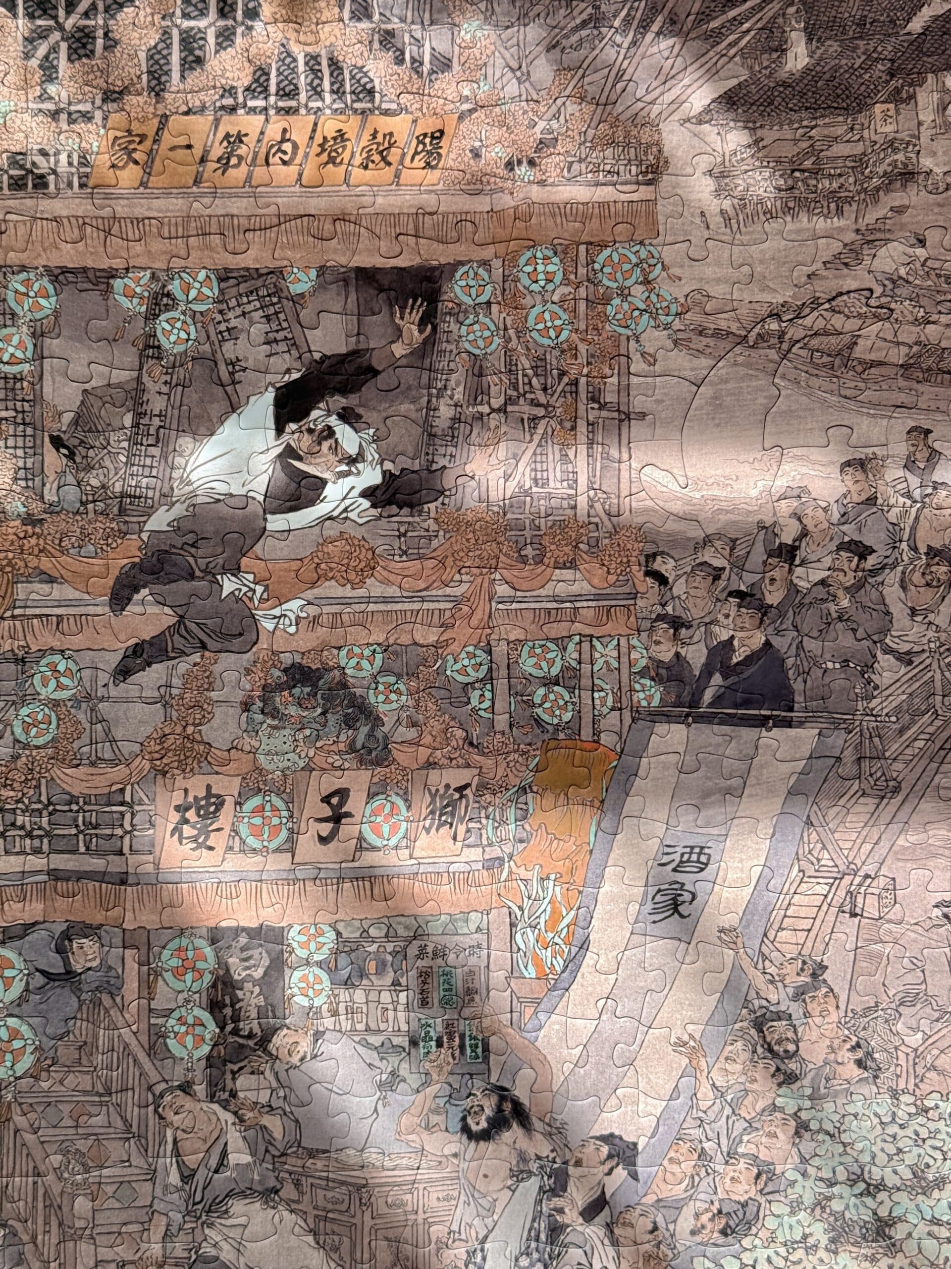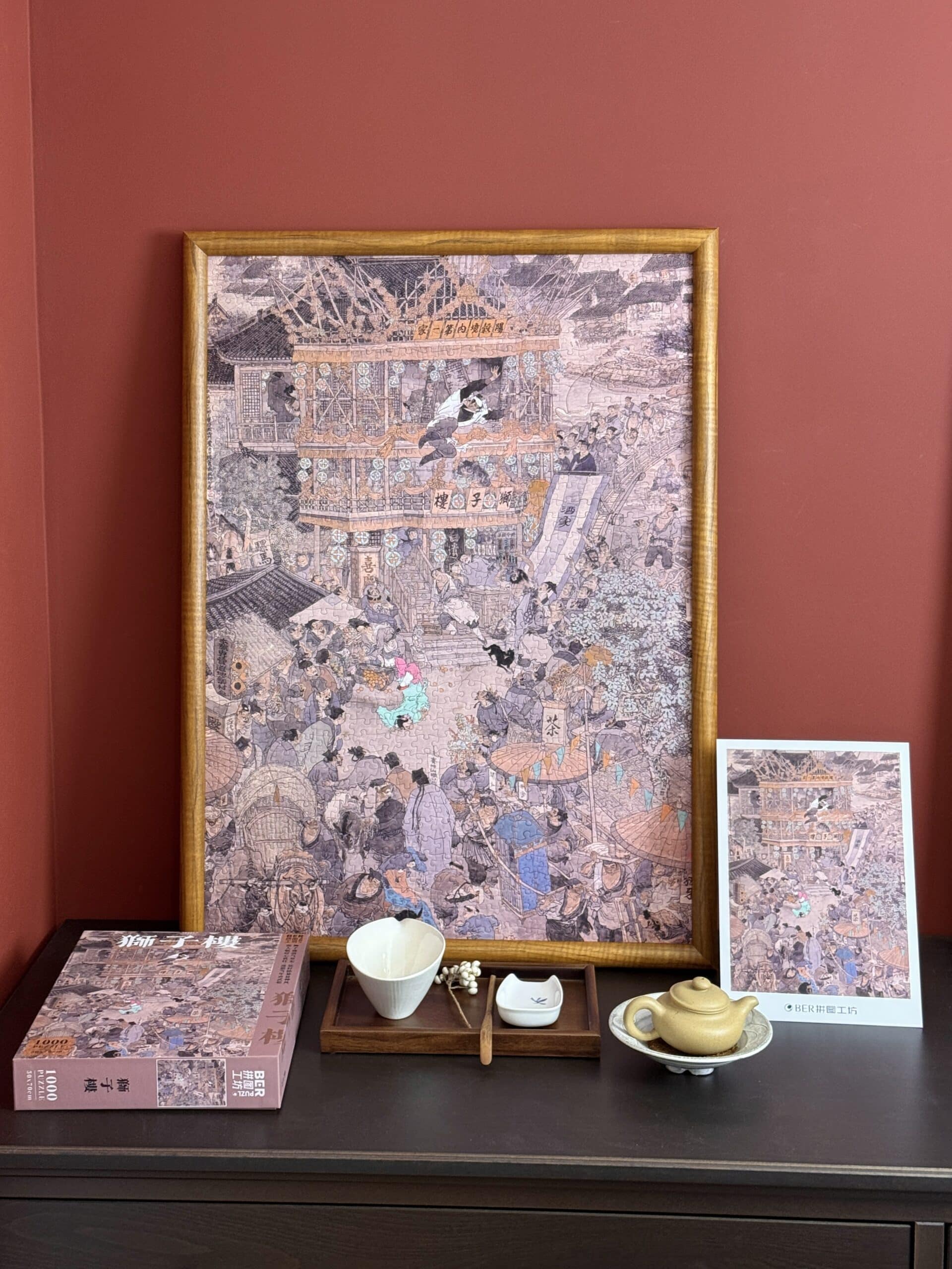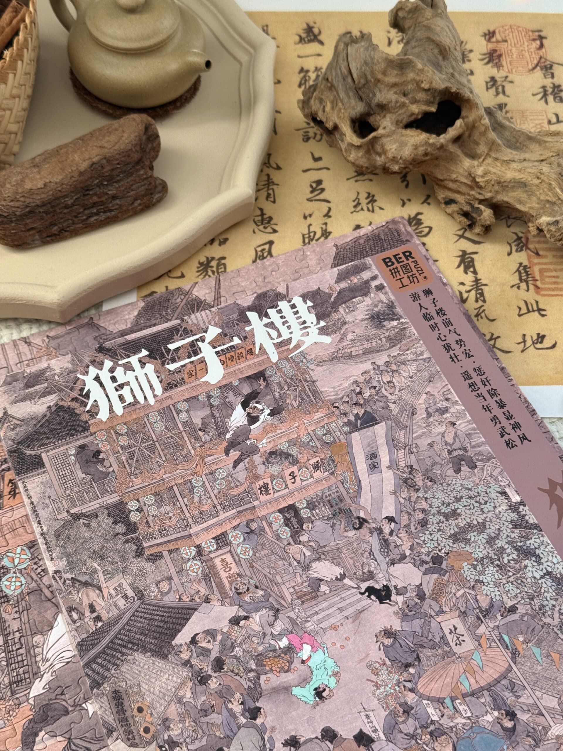 The Lion Tower 1000-piece velvet art puzzle features Dai Dunbang’s vintage-style depiction of the iconic Lion Tower scene from Water Margin. Crafted from premium imported blue card with a matte velvet-touch finish, it offers a captivating journey through classical artistry and timeless storytelling.