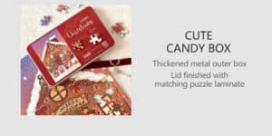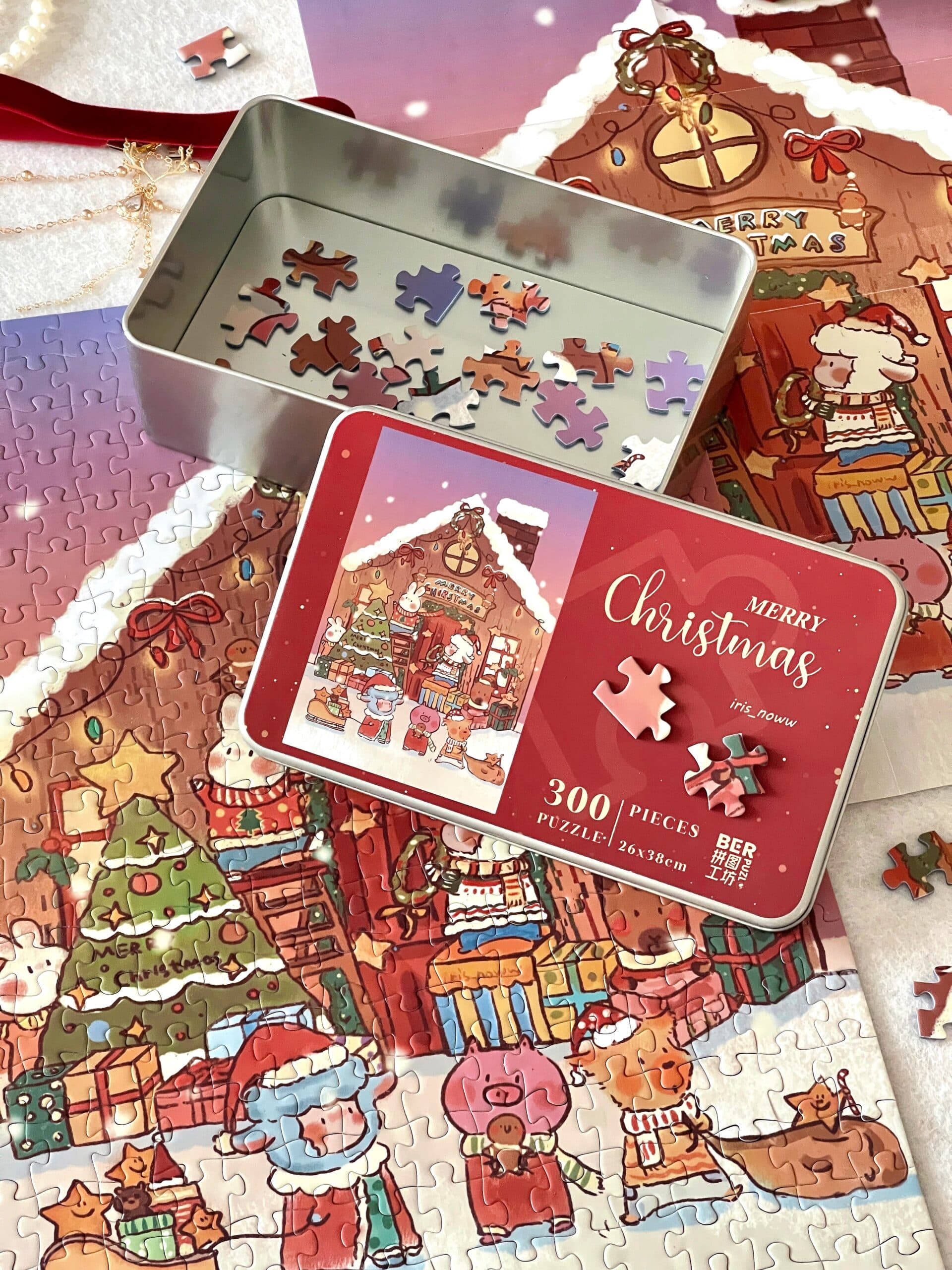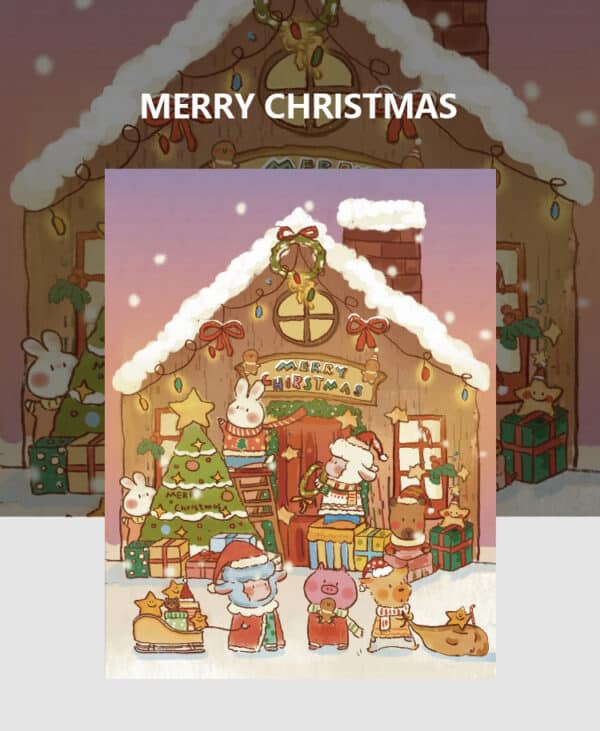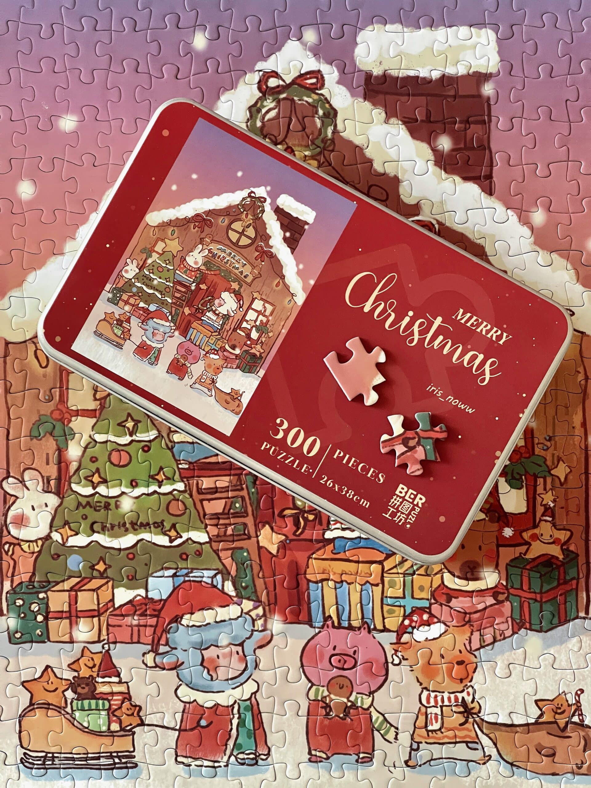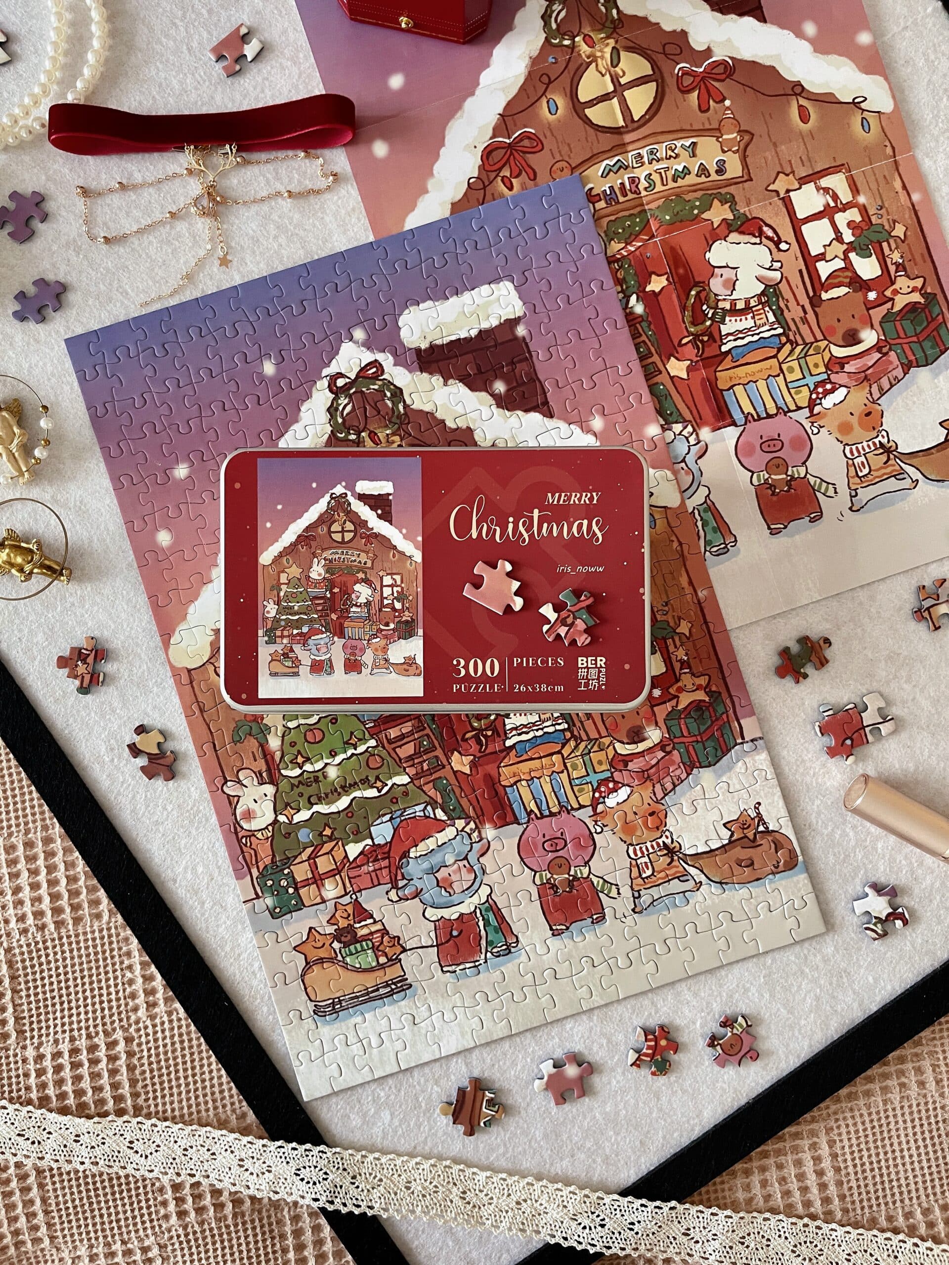 The Merry Christmas 300-piece velvet art puzzle features Baudelaire the little lamb and his friends joyfully decorating a cozy home for the holiday season. Crafted from premium imported blue card with a soft velvet-touch finish, it captures the warmth and festive charm of Christmas in a delightful puzzle that’s perfect for both play and keepsake.