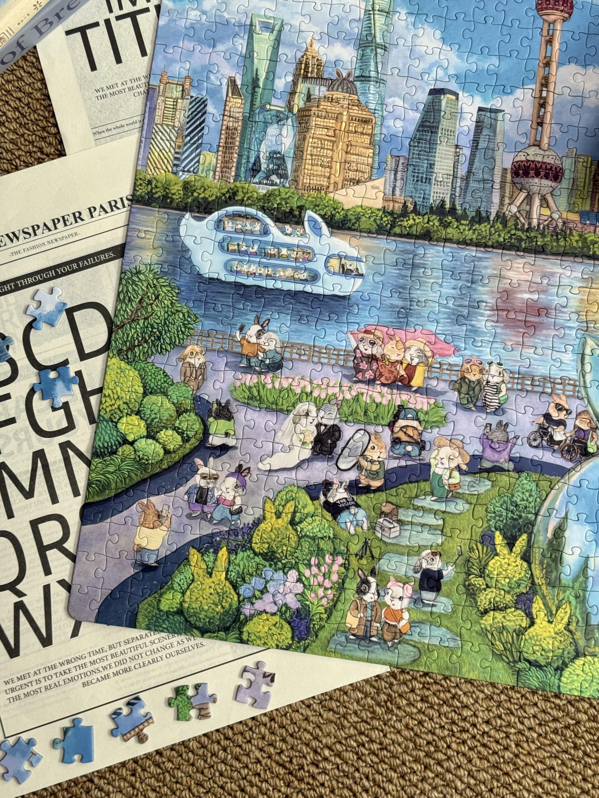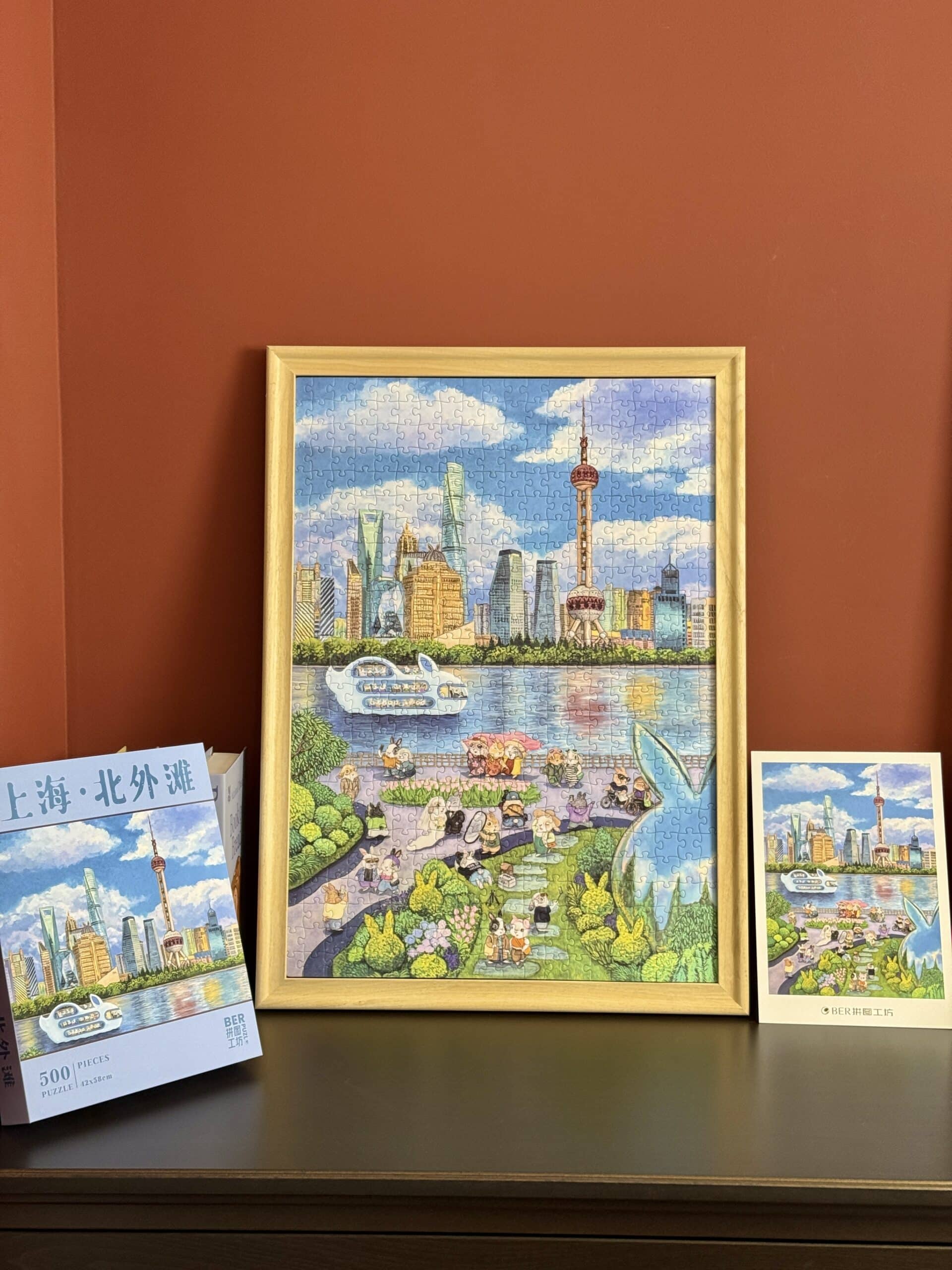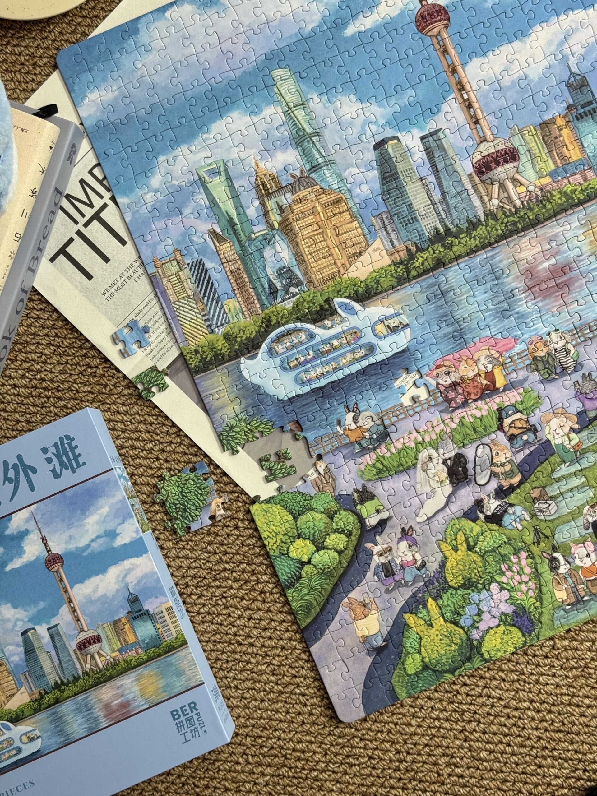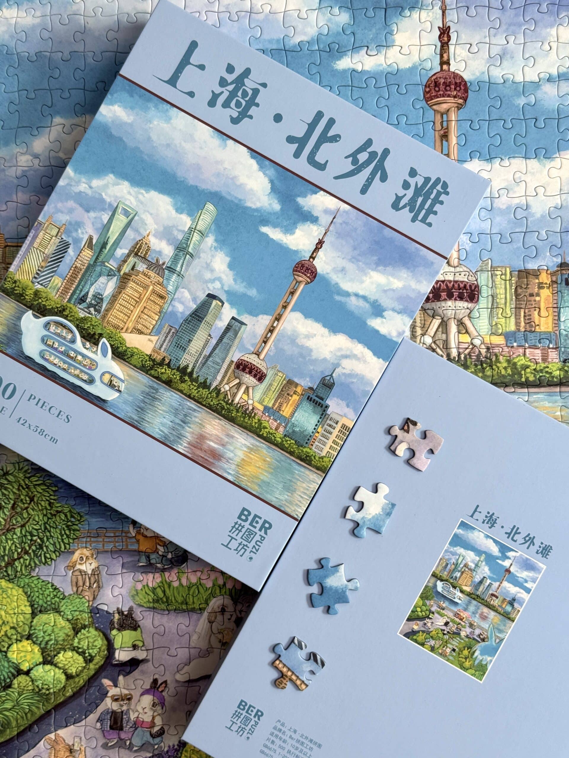 The Shanghai North Bund 500-piece velvet art puzzle portrays the vibrant charm of Shanghai’s North Bund in a cheerful, heartwarming cartoon style, where a delightful variety of rabbit travelers leisurely enjoy their journeys. Crafted from premium imported blue card with a velvet-touch finish, the puzzle weaves together luxurious texture and intricate detail, offering a captivating and immersive assembling experience.