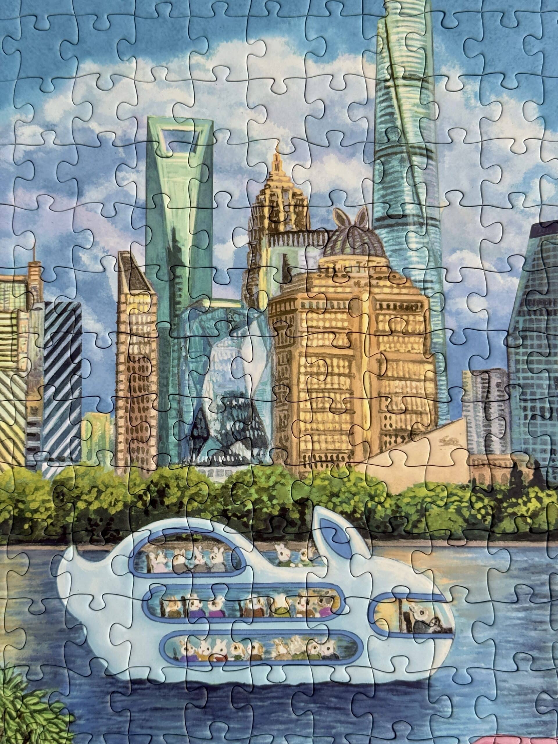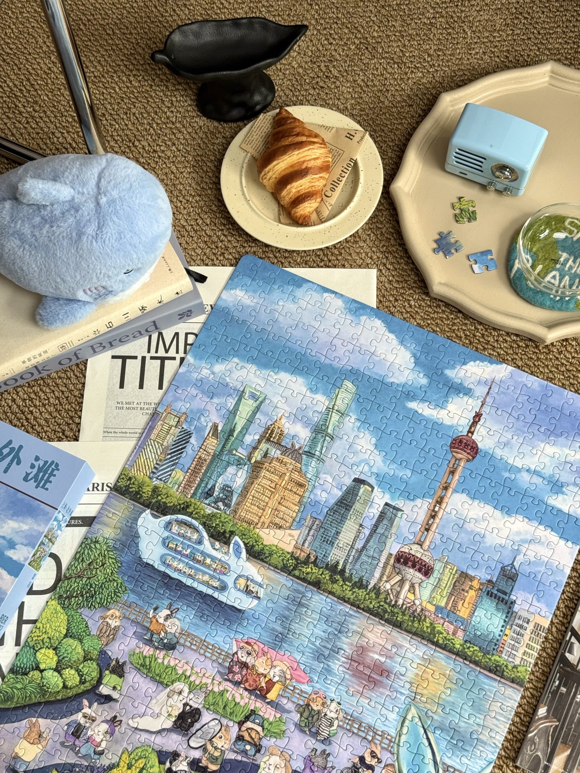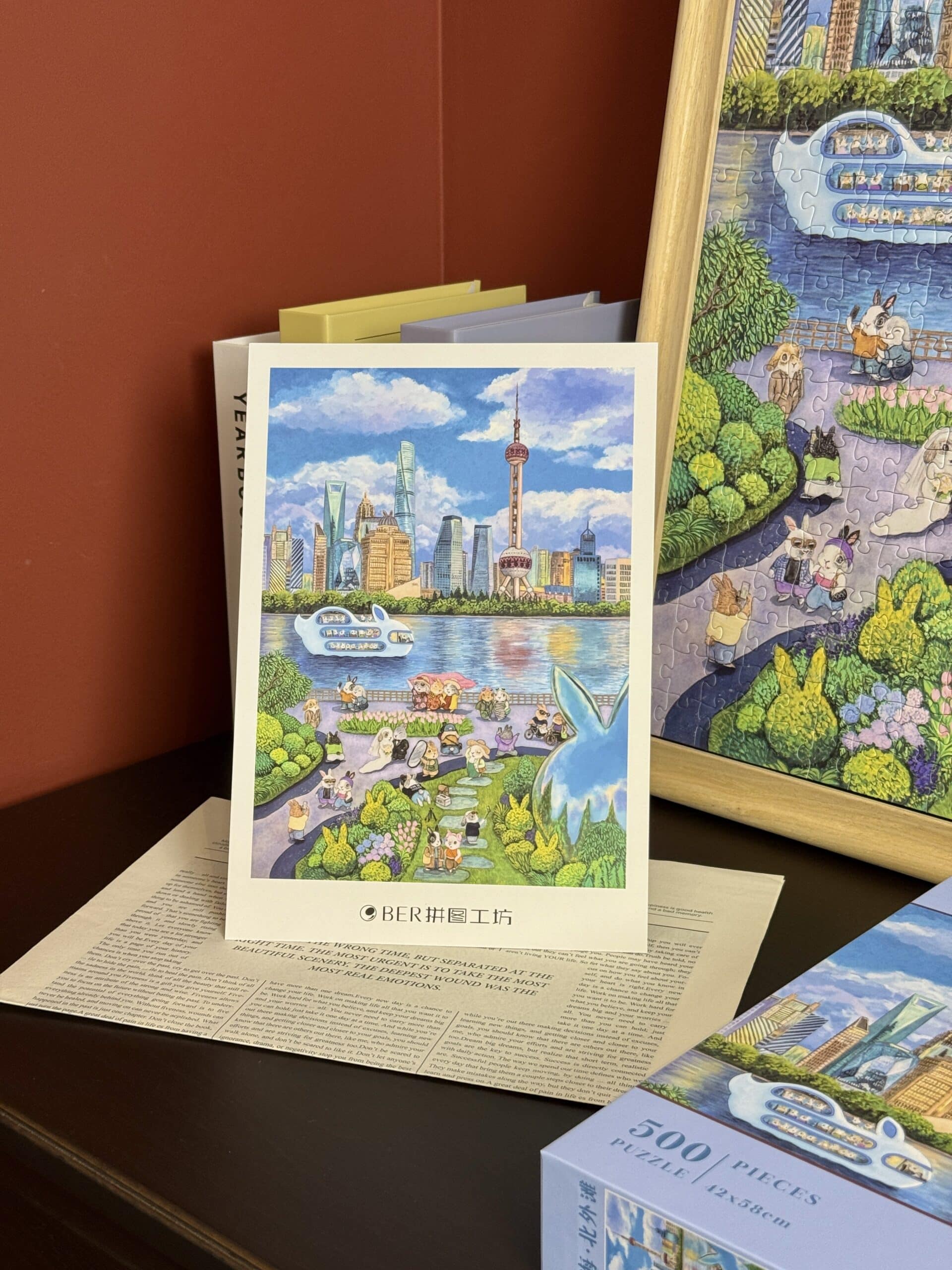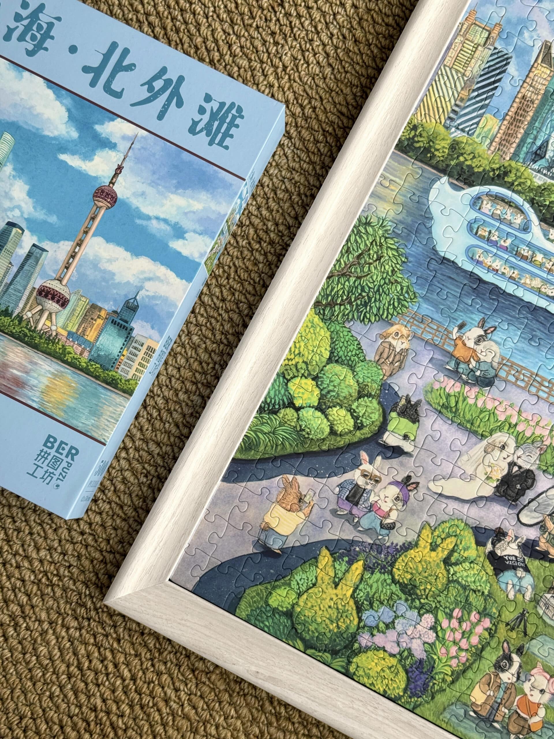 The Shanghai North Bund 500-piece velvet art puzzle portrays the vibrant charm of Shanghai’s North Bund in a cheerful, heartwarming cartoon style, where a delightful variety of rabbit travelers leisurely enjoy their journeys. Crafted from premium imported blue card with a velvet-touch finish, the puzzle weaves together luxurious texture and intricate detail, offering a captivating and immersive assembling experience.