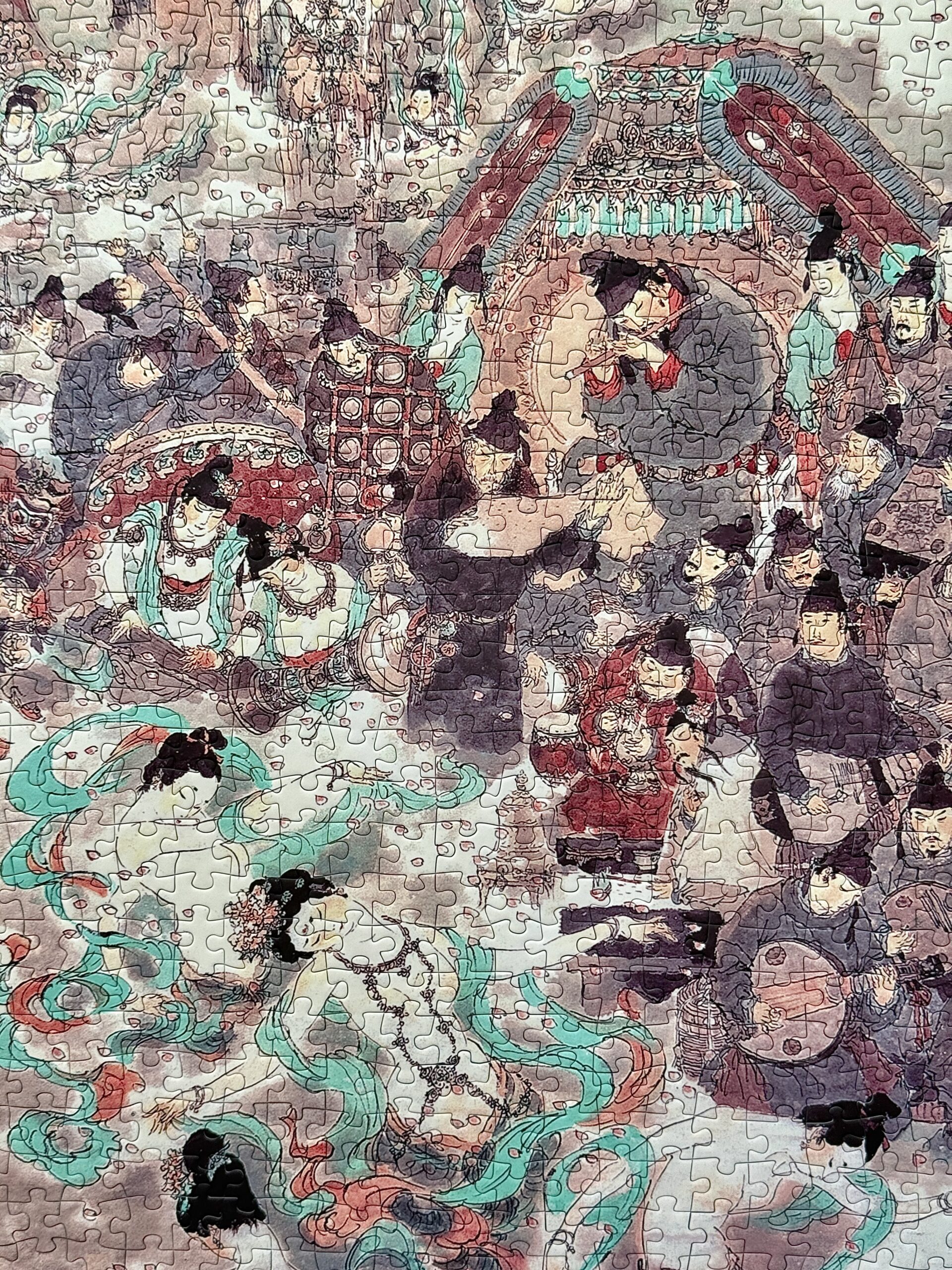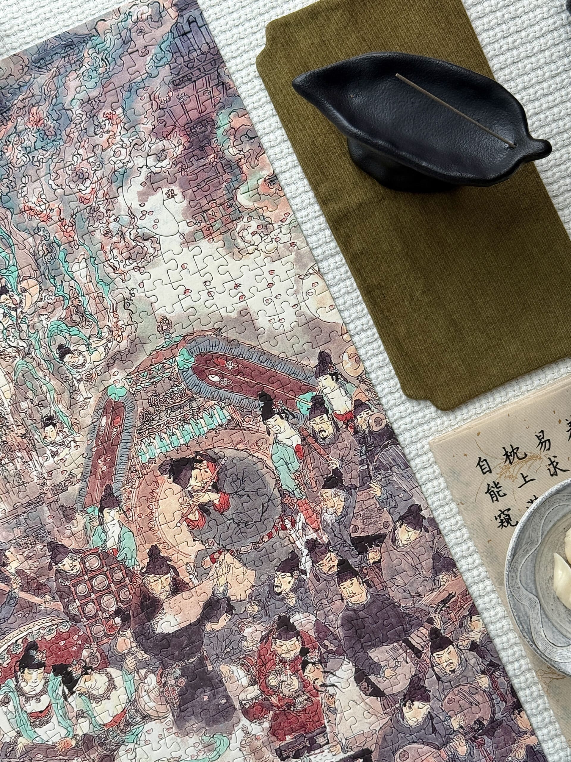 The Song of the Rainbow Skirt and Feathered Dress 1000-piece velvet art puzzle captures the grandeur of a Tang Dynasty court banquet with elegant Chinese-inspired artistry. Crafted from premium imported blue card stock and enhanced with a matte velvet-touch finish, it delivers refined visuals with a smooth, non-reflective surface. This puzzle is a perfect blend of cultural elegance and immersive fun.