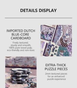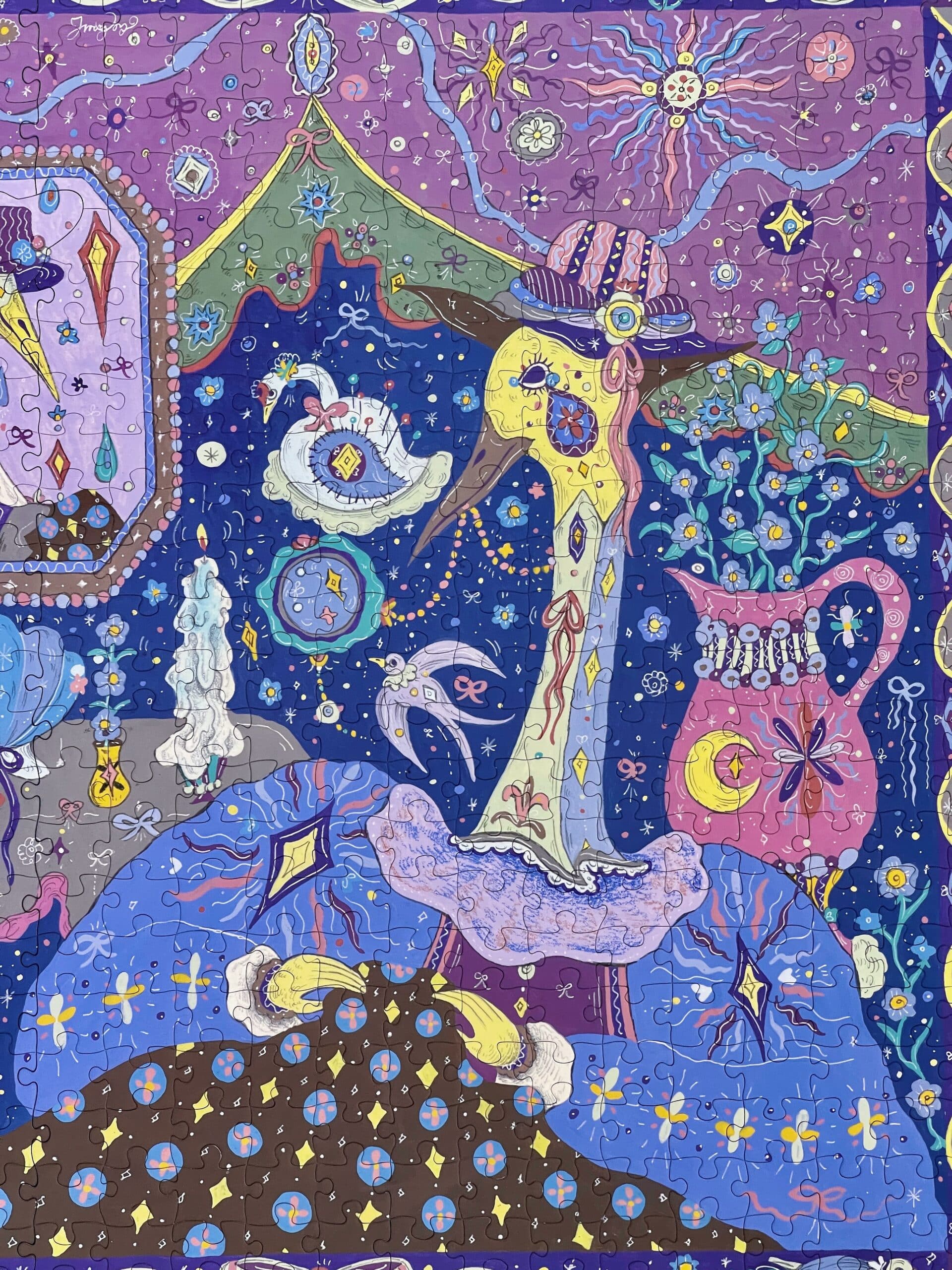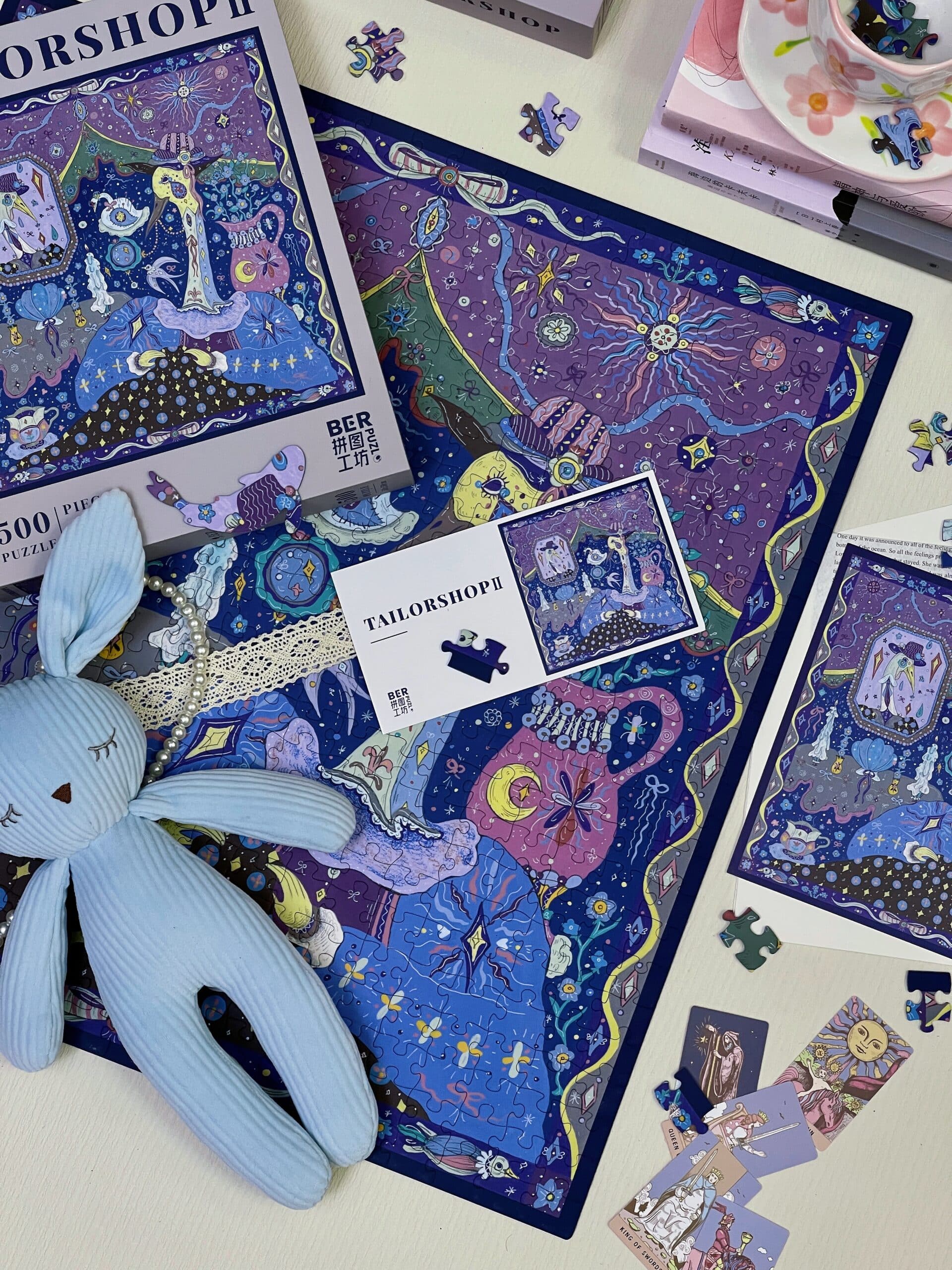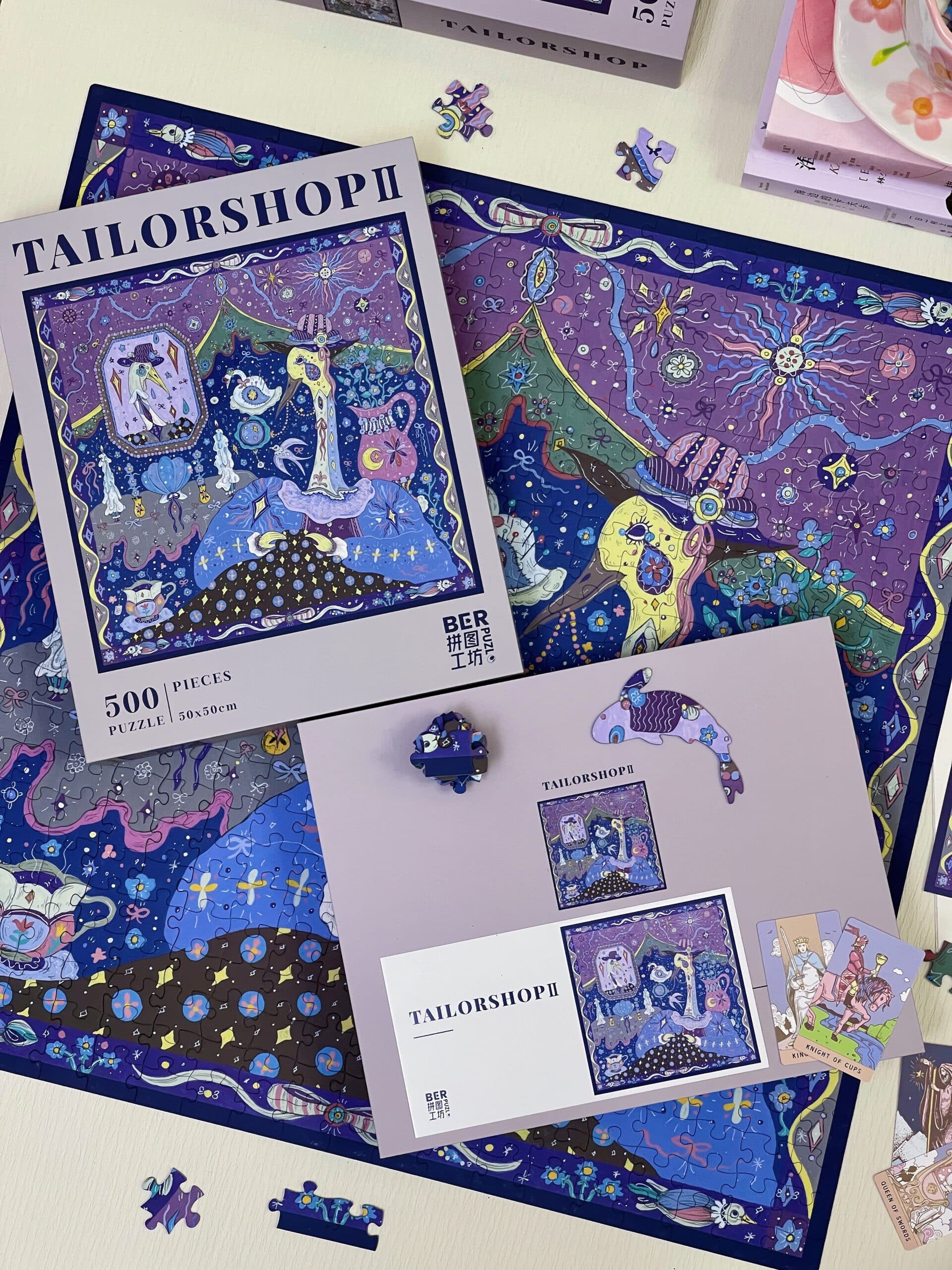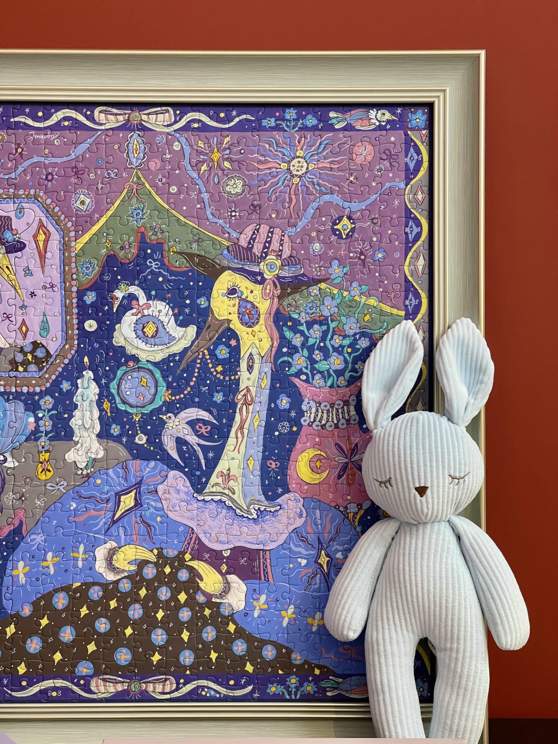 The Tailor’s Shop II 500-piece velvet art puzzle depicts an elegant swan gracefully enjoying afternoon tea in a refined room, her gaze resting upon a portrait on the wall. Crafted from premium imported blue card with a velvet-touch finish, the puzzle blends luxurious texture with exquisite detail, offering a delightful and immersive assembling experience.
