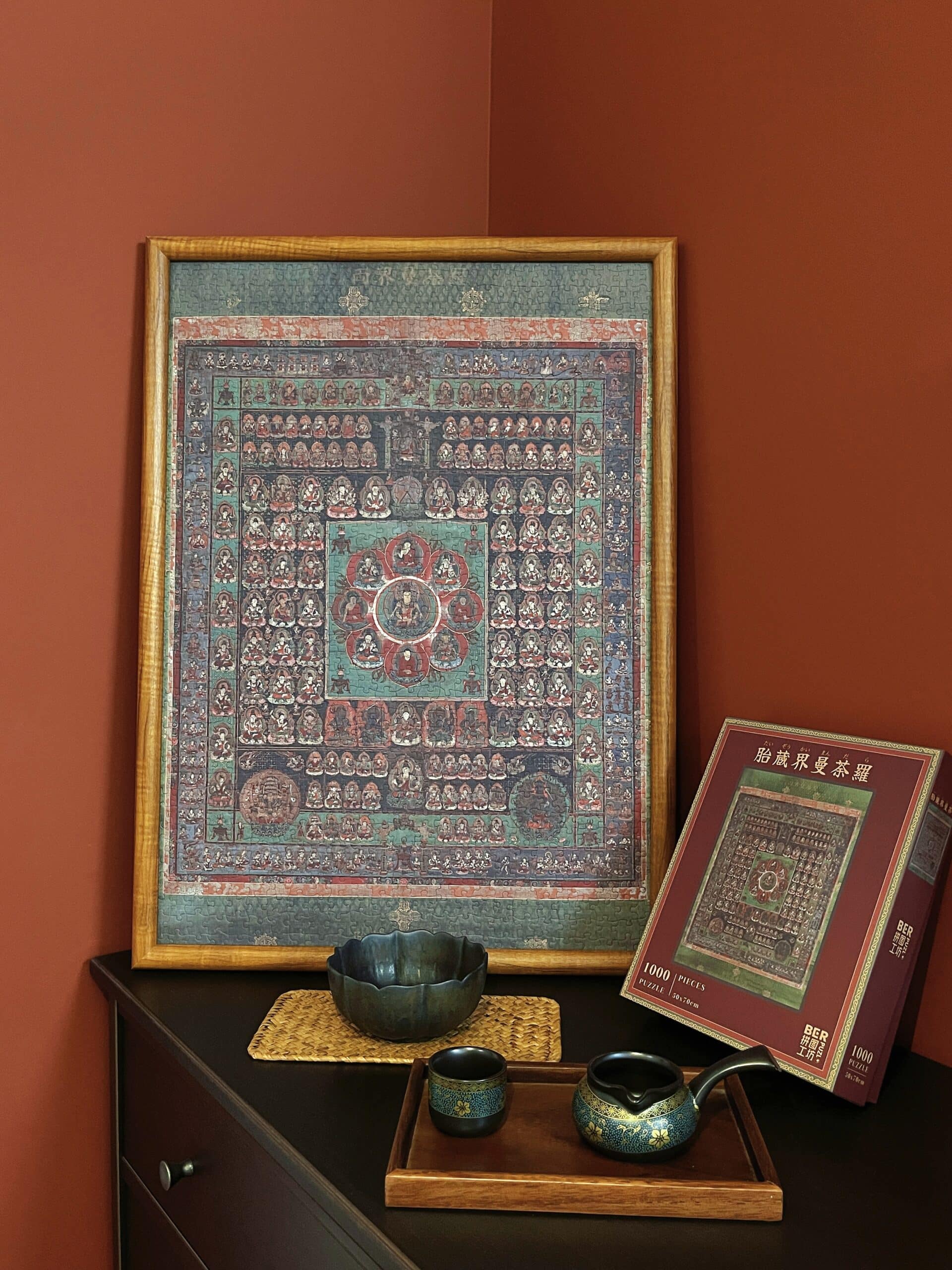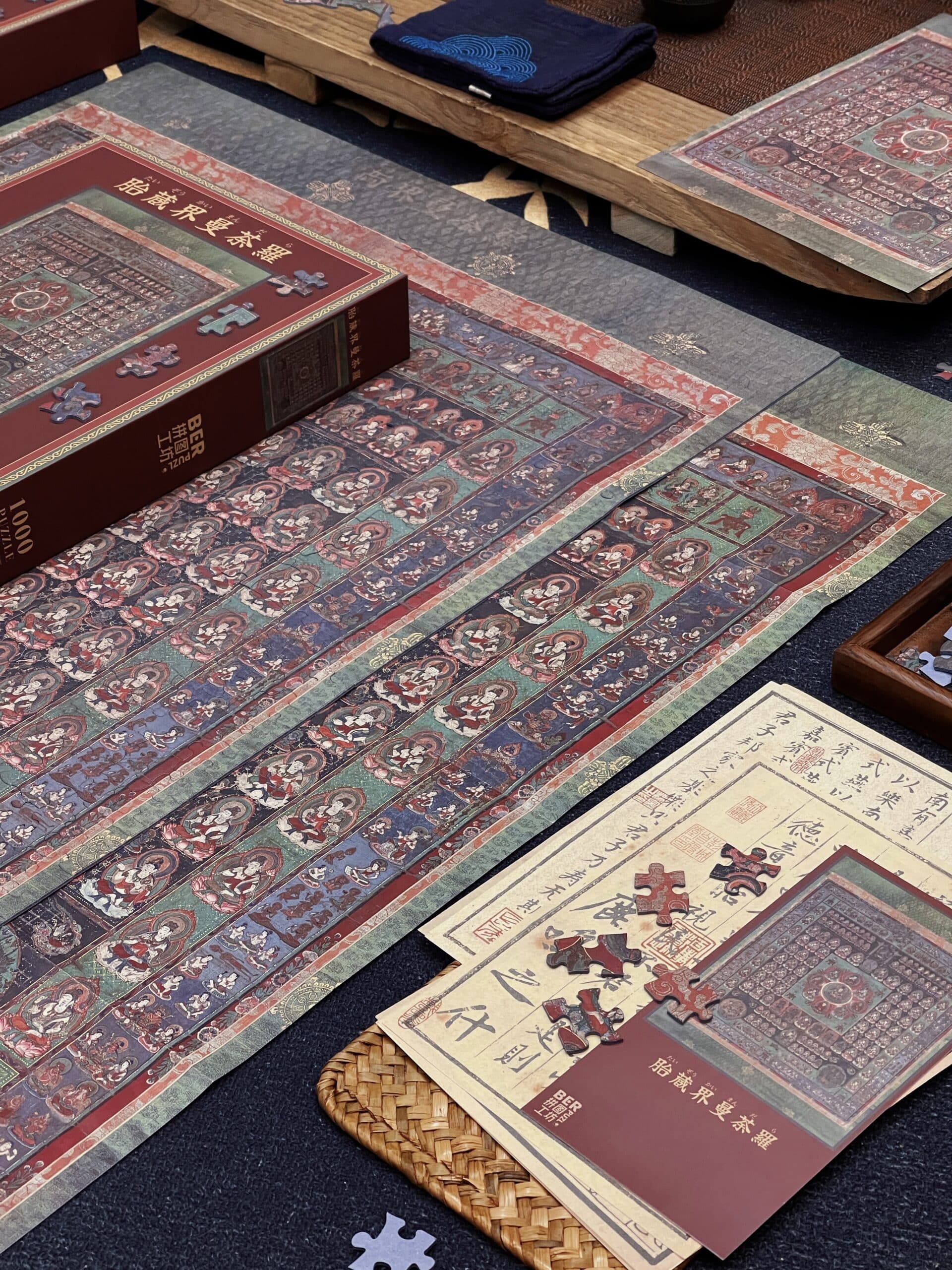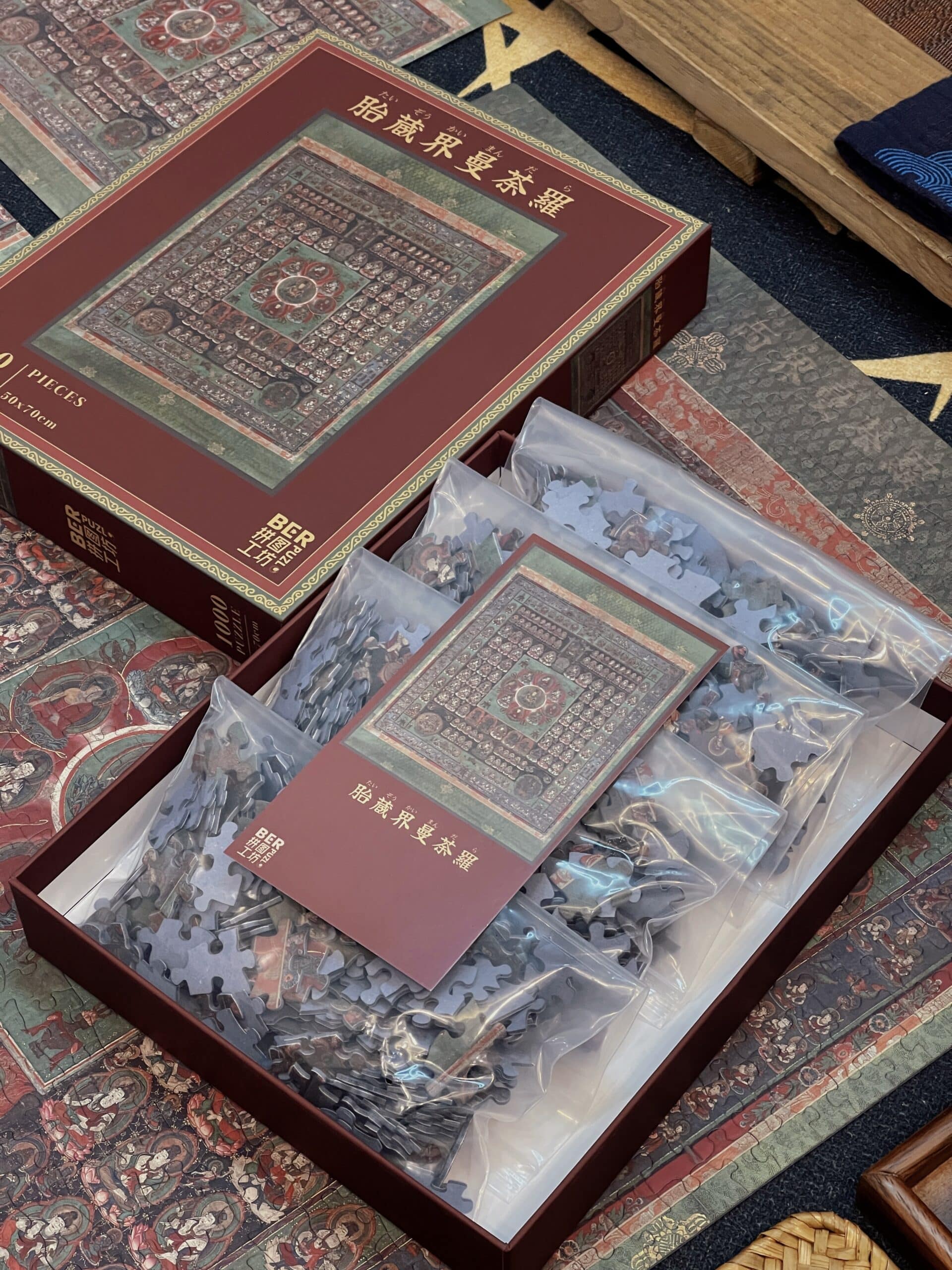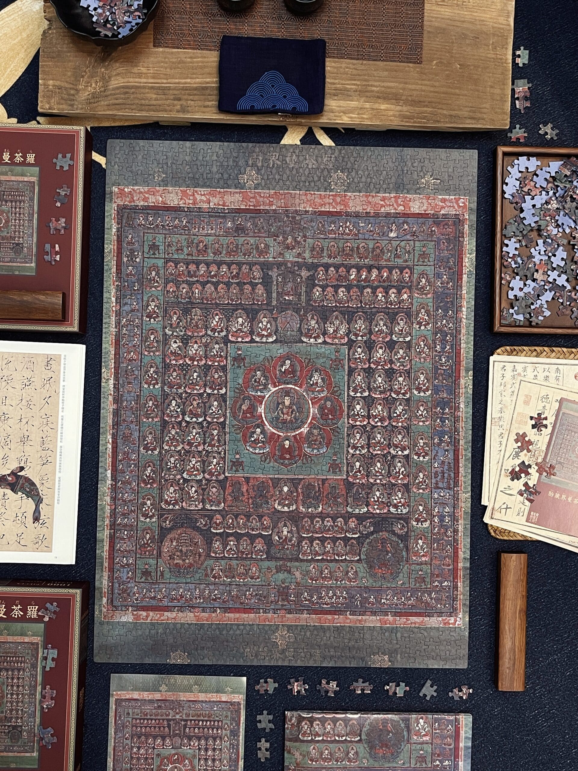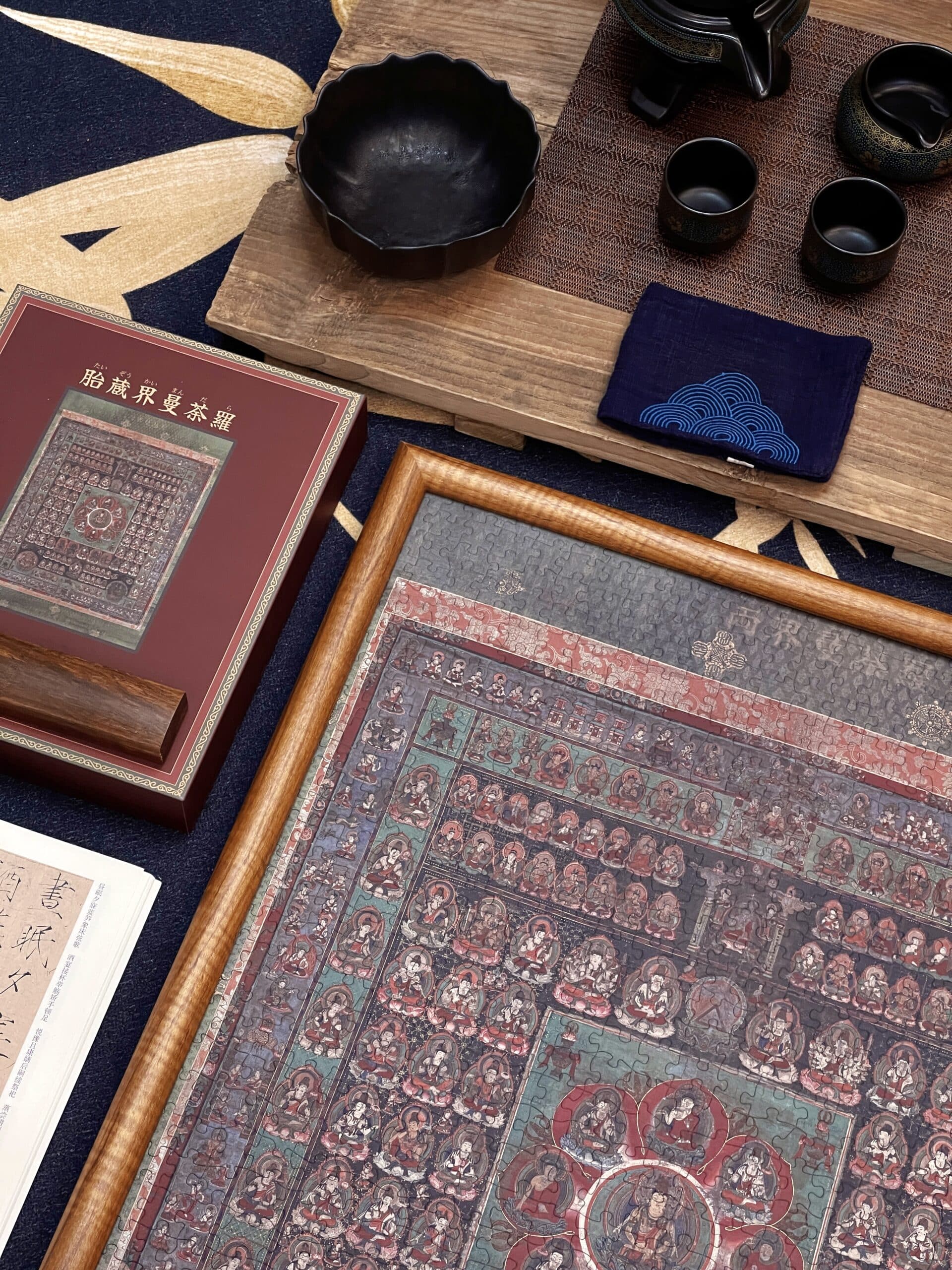The Womb Realm Mandala 1000-piece velvet art puzzle showcases a revered Buddhist mandala from the Nanboku-chō period, housed at Daikō-in Temple in Shibata, Japan. Rooted in the esoteric teachings of the Mahāvairocana Sūtra, it symbolizes the profound worldview of Esoteric Buddhism, centered on the cosmic Buddha Dainichi Nyorai. With its intricate structure of deities arranged across lotus-inspired courts, the mandala embodies compassion, wisdom, and the universal potential for enlightenment—now beautifully reimagined as an inspiring puzzle experience.